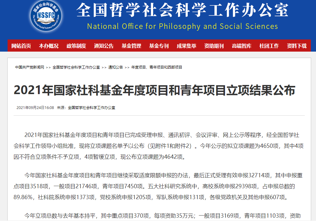 2021年9月24日,全国哲学社会科学办公室公布了2021年国家社科基金年度项目、青年项目立项结果,学院近三年来持续发力科研,张振波副教授获得青年项目立项,詹国彬教授获得国家社科基金重点项目立项,这是电影天堂 首次获批这一级别的项目。