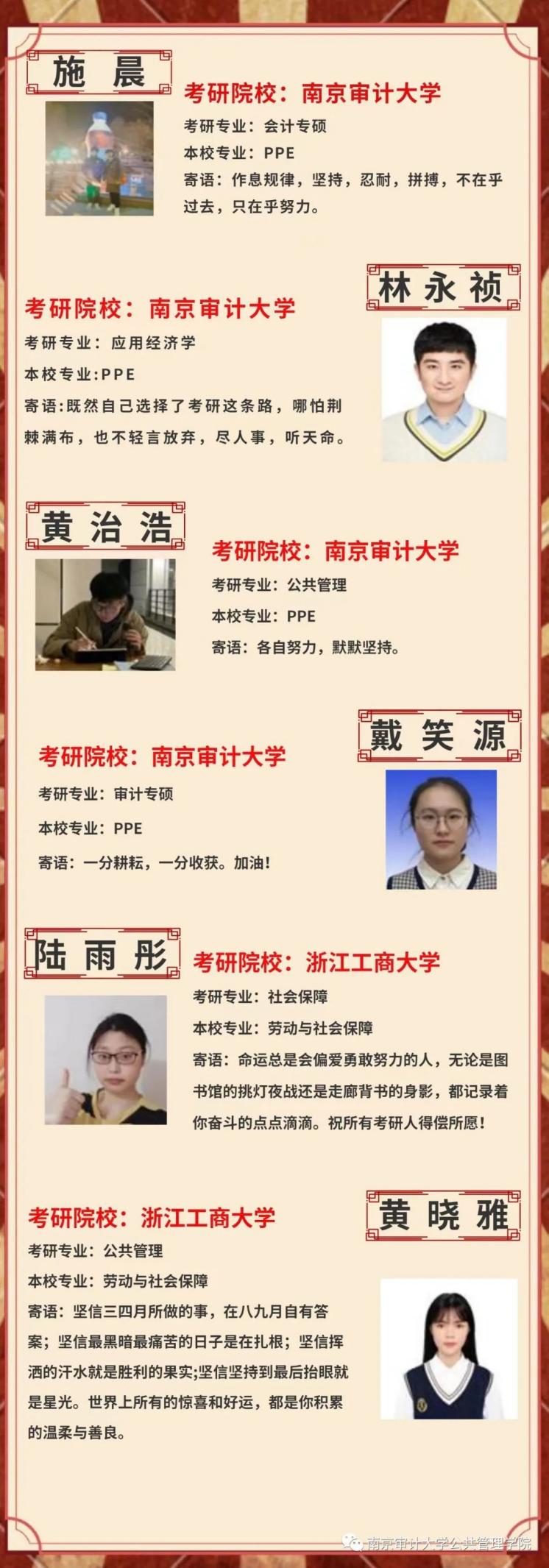 有不少同学选择继续攻读本校公共管理学院的研究生学位,不忘初心,砥砺奋进;与此同时,也有其他同学选择本校的审计专硕、会计专硕和应用经济学等其他专业,以此拓宽知识面,继续追逐自己的梦想。无论最后选择了什么专业,大家都是母校的骄傲!