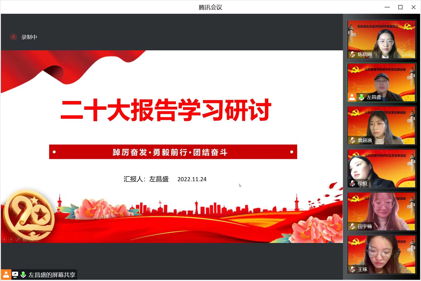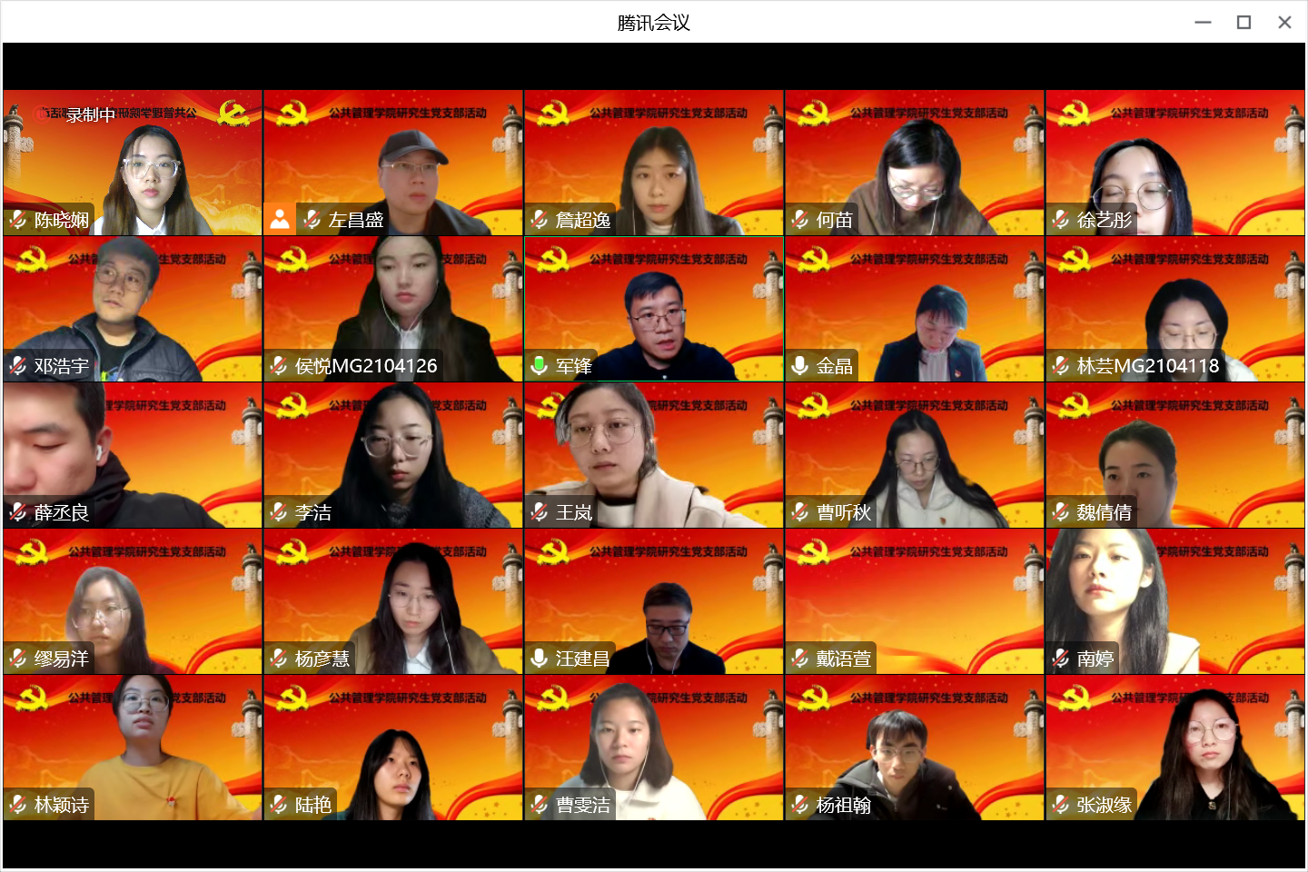 2022年11月24日,按照公共管理学院党委统一部署,电影天堂 研究生党支部于线上召开支部党课学习暨“我为师生办实事”研究生支部调研座谈会。活动由支部书记左昌盛主持,学院党委书记金晶,学院党委副书记、副院长汪建昌及学院副院长赵军锋出席本次活动。