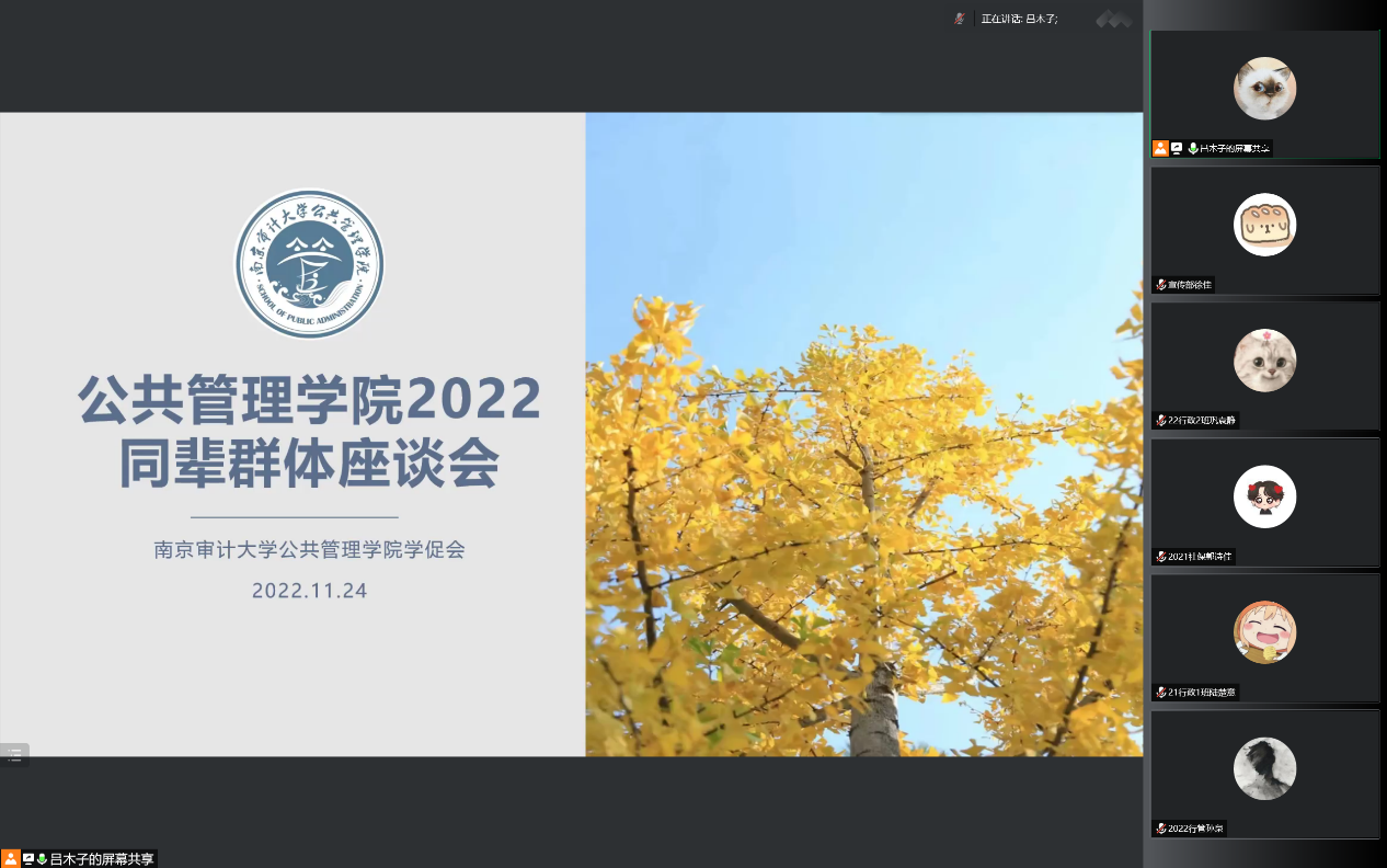 2022年11月24日21:00,电影天堂 公共管理学院学促会于线上举办了同辈群体座谈会。30余名来自20、21和22级的同学参与了本次会议。