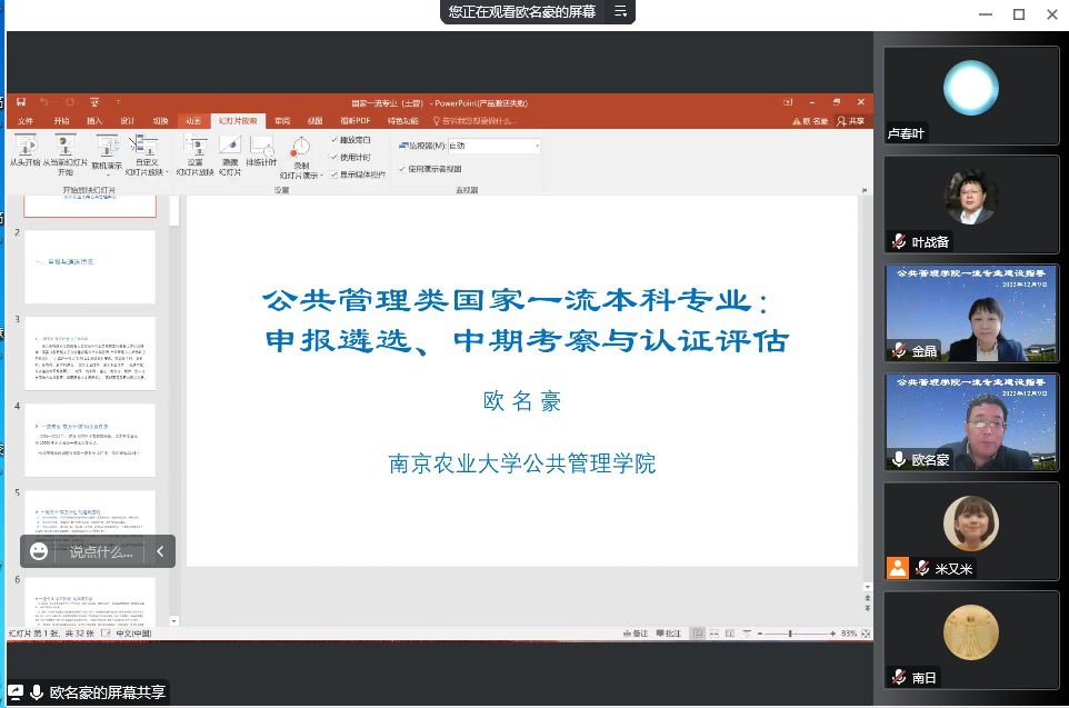 为更好开展电影天堂 行政管理、劳动与社会保障专业的国家一流专业建设工作,12月9日下午,电影天堂 邀请南京农业大学欧名豪教授面向全院教师开展了国家一流专业建设线上指导讲座。讲座由学院党委书记金晶主持。