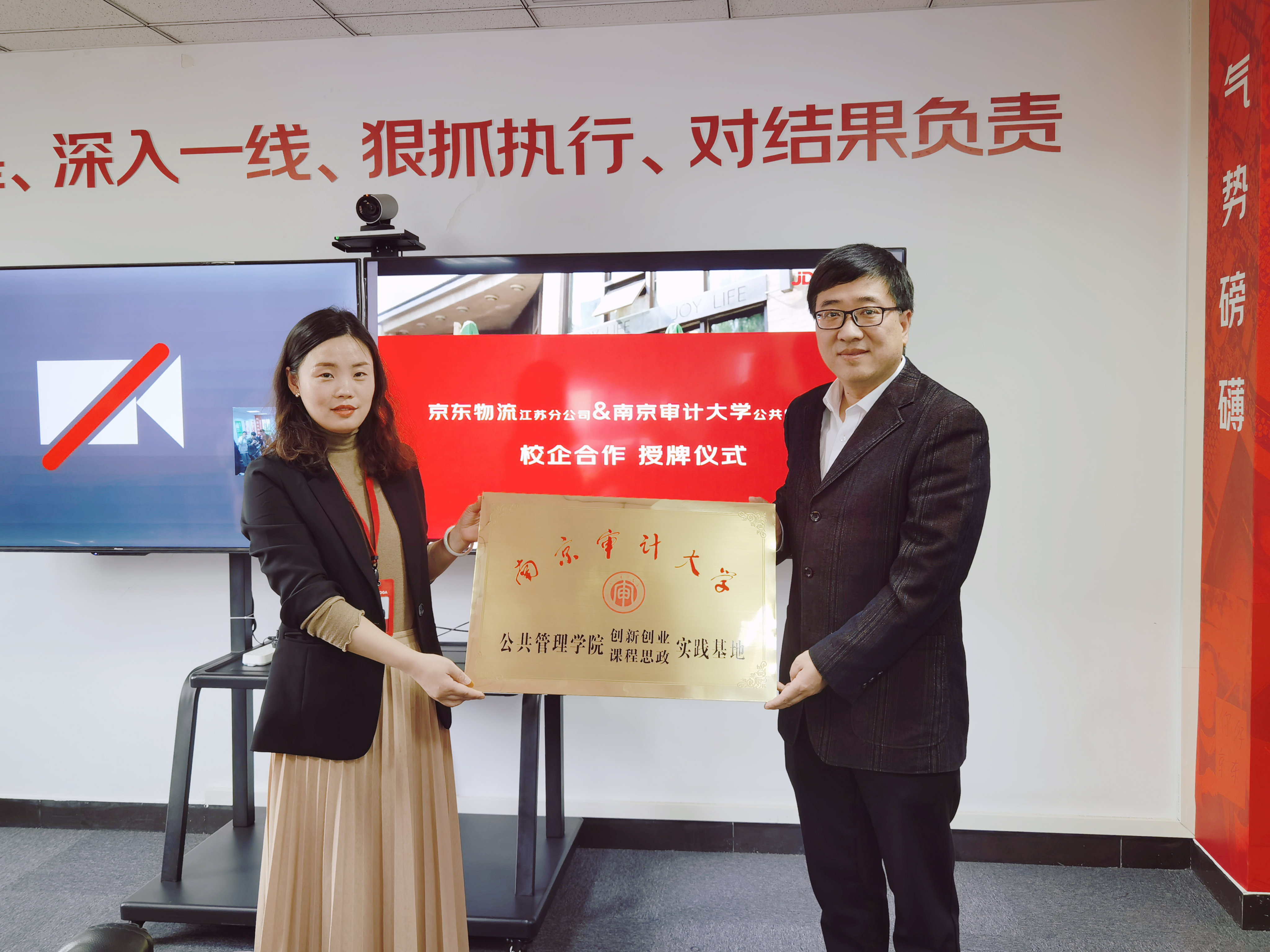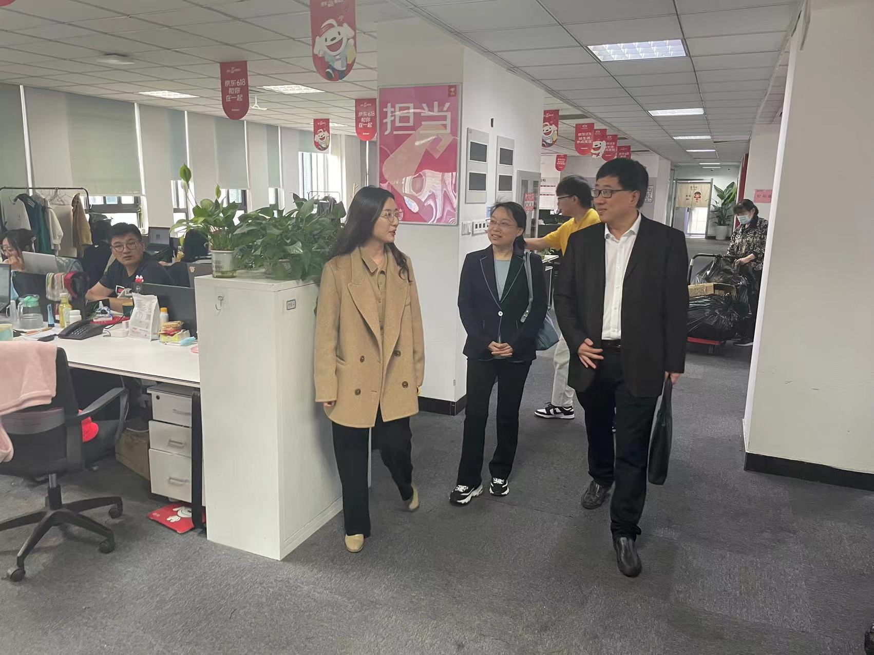 4月28日,公共管理学院党委副书记、副院长汪建昌、行政管理专业系主任杨钰、学院教师鹿斌一行赴京东物流江苏分公司开展访企拓岗活动。京东物流江苏分公司人力资源部总监殷小平、人力资源部员工关系经理万小青、人力资源部人才发展经理张华、人力资源部招聘经理王先凤出席活动。