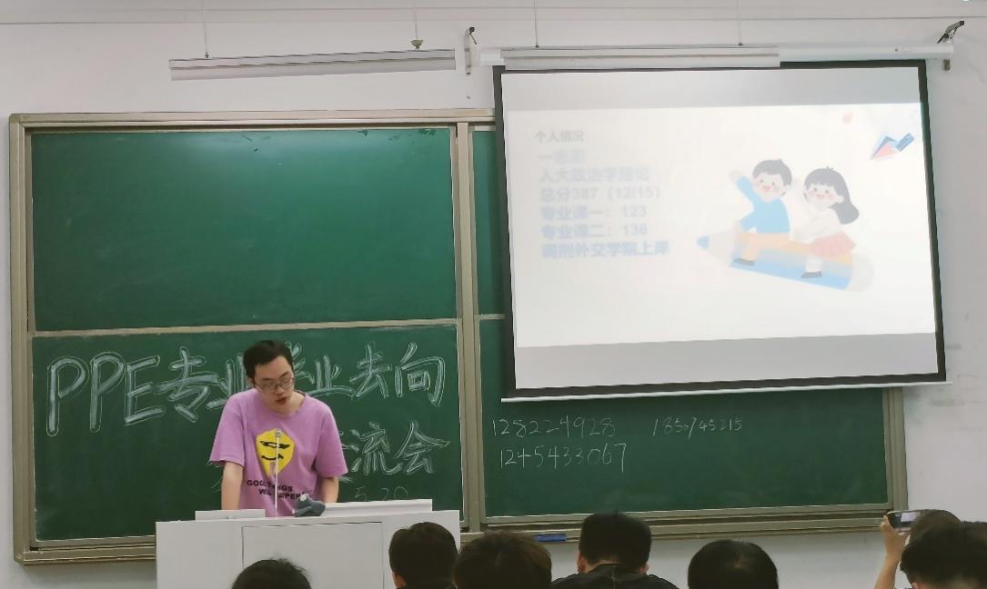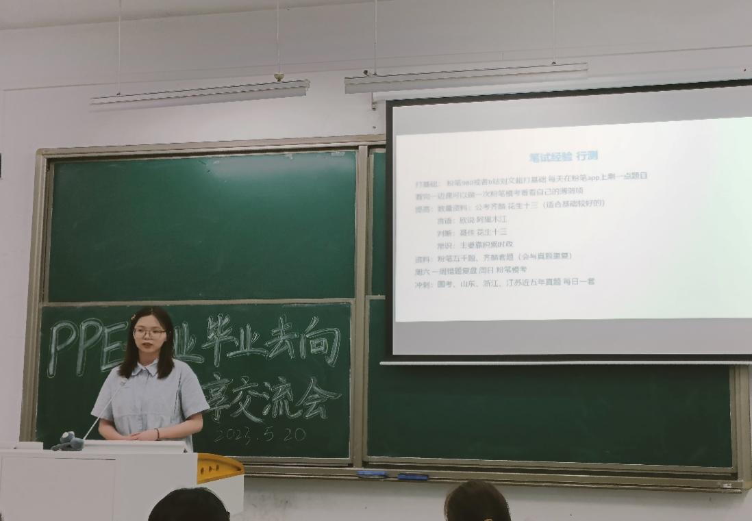 2023年5月20日18:00-20:30,电影天堂 公共管理学院于敏知楼101举办了PPE专业毕业去向分享交流会。本次讲座邀请到了考公成功的秦蜜、戴欣怡学姐,拿到offer的朱梓萌学姐,顺利申英留学的柴子熙学姐,考研“上岸”的华玮琦、李闯、郭沁松学长及黄梦洁学姐为大家分享考公、就业、出国及考研的相关经验。本次会议由公共管理学院PPE系主任汪建康老师及副主任王扩建老师全程筹备并参与,由汪建康老师主持。