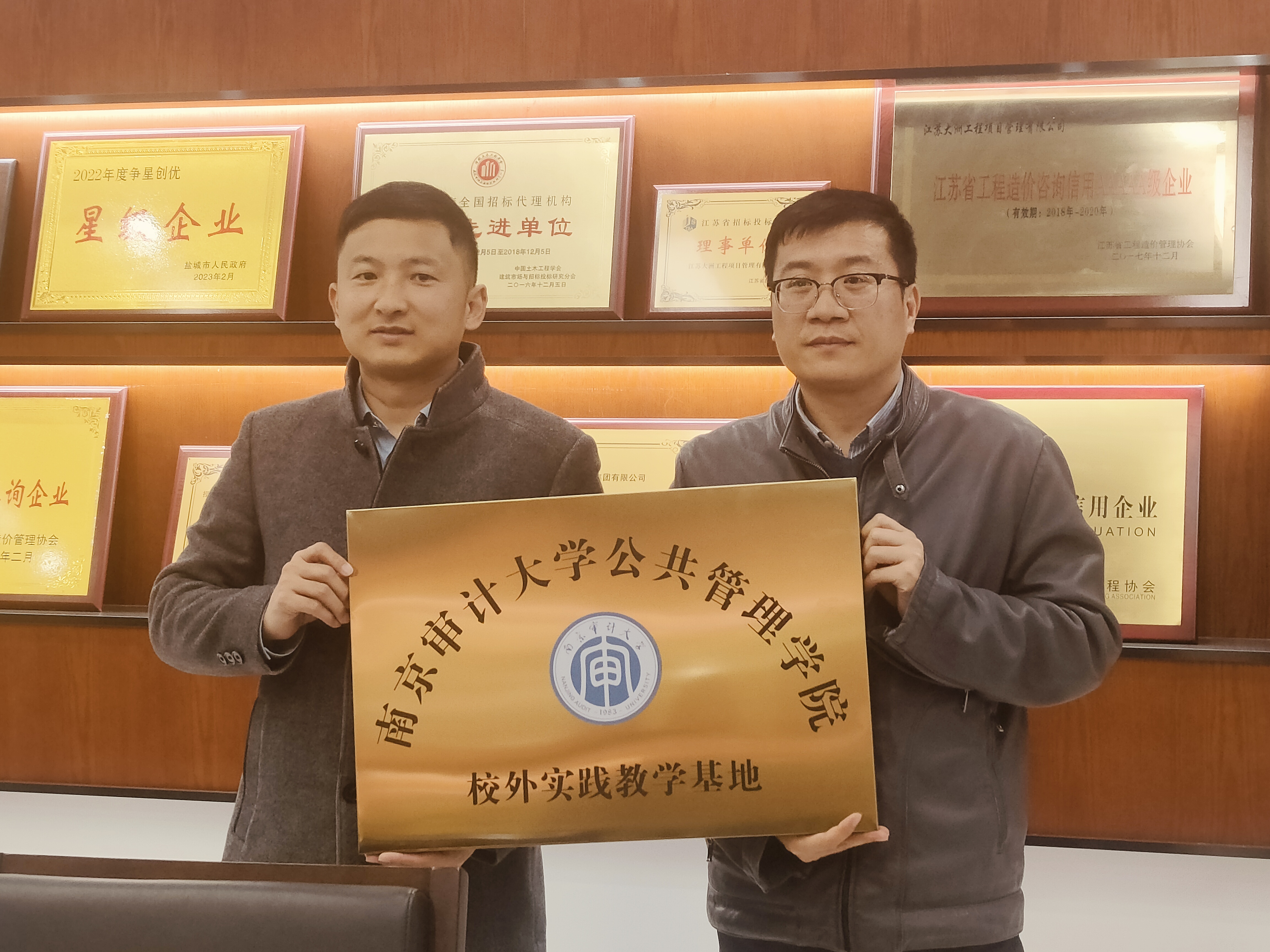 李东升在开场致辞中,代表公司对公共管理学院师生的到来表示热烈欢迎。他简要介绍了公司的历史和未来发展规划;他热切期待更多优秀的学子能够加入大洲设计咨询集团有限公司,共同开创美好的未来。赵军锋介绍了学院的基本情况及人才培养情况,他对大洲设计咨询集团有限公司给南审学子提供实践机会和成长平台表示感谢;学院将组织优秀学生多批次地到实践基地实习,期待双方将在产学研合作方面深入探索有效合作机制。李东升和赵军锋作为双方代表共同为校外实践教育基地揭牌。