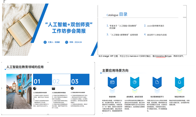 左昌盛老师3月份参加了教育部高等学校创新创业教育指导委员会主办的全国高校“人工智能+”双创教育师资发展工作坊,他将工作坊的学习内容和学习心得与学院老师进行了交流与探讨。他首先介绍了目前“人工智能+双创教育”的最新进展、挑战与机遇,并通过AI赋能的教学演示展示了人工智能在教育领域的最新应用。他指出,ChatGPT对人类社会最为根本的改变,将发生在教育领域。在信息技术领域,新知识一年之内就可能被取代和更新。AI时代“知识中心主义”甚或“能力中心主义”会淡出教育。面临这一挑战,我们需要思考老师教授什么,学生应该学习什么,以及教育和学习的真正意义。