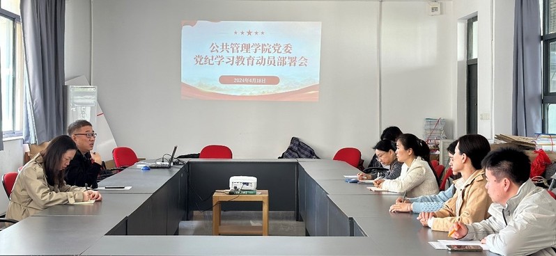 4月18日,公共管理学院党委在竞慧西209召开党纪学习教育动员部署会。会议采用线上线下结合方式,公共管理学院党委委员及全体支部书记参加会议,会议由学院党委副书记(主持)汪建昌主持。