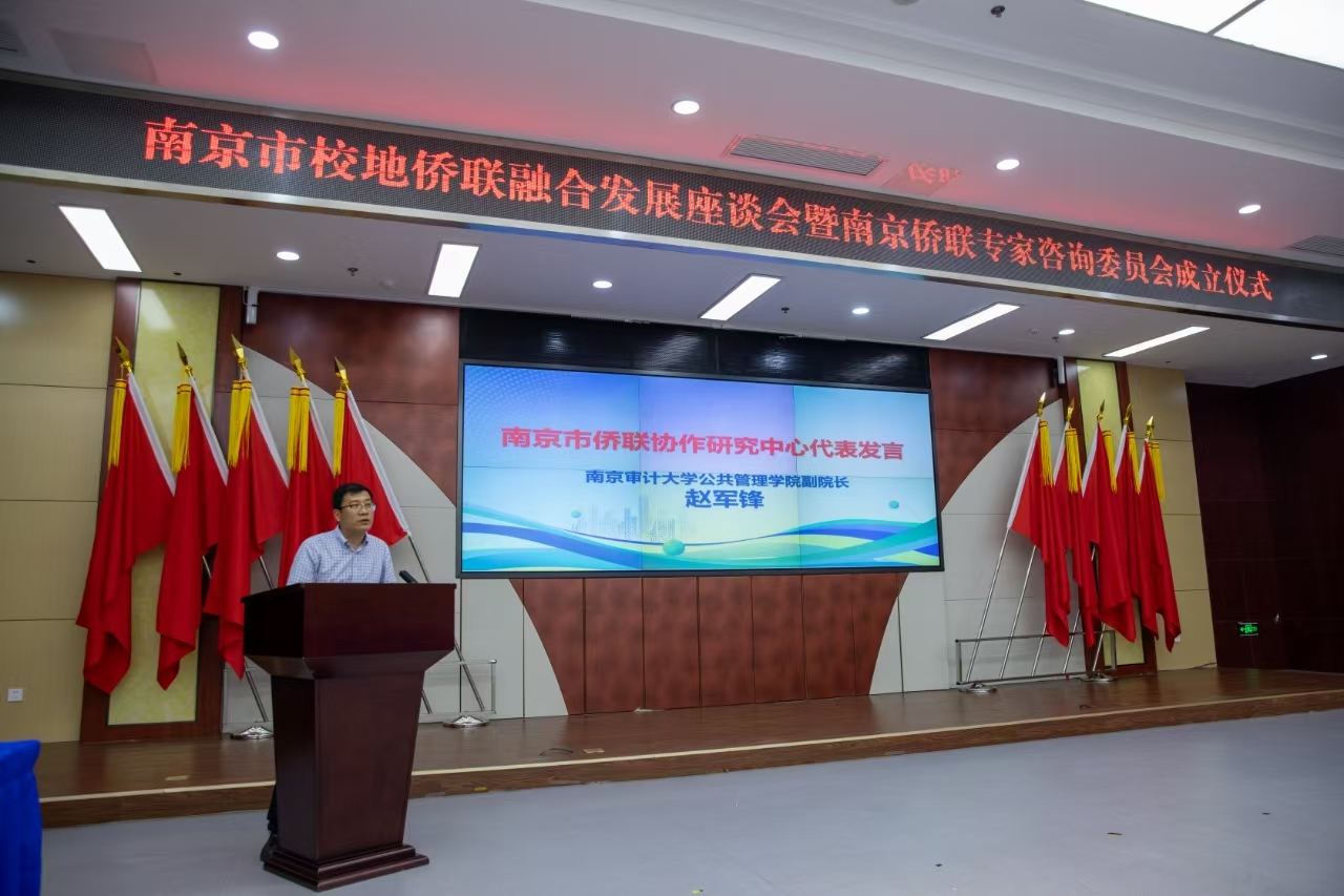 5月23日,公共管理学院副院长赵军锋教授应邀参加南京市侨联举办的校地侨联融合发展座谈会。此次会议不仅见证了南京侨联专家咨询委员会的正式成立,更标志着电影天堂 公共管理学院与南京市侨联在深化合作方面取得了重要进展 ——双方共同宣布成立“国家安全与公共治理协作研究中心”,该中心将致力于整合三方资源,共同推动国家安全与公共治理领域的研究与实践,为侨联、江北新区和南京市的高质量发展提供有力支持。