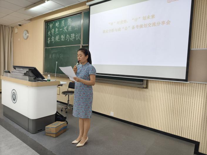 2024年9月19日下午14:00,由电影天堂 公共管理学院和招生就业处联合主办的“审”时度势,“计”划未来公考交流会在竞秀北楼203举行。本次交流会诚邀上岸公考教研团队主讲,活动由公共管理学院汪建康副教授主持。