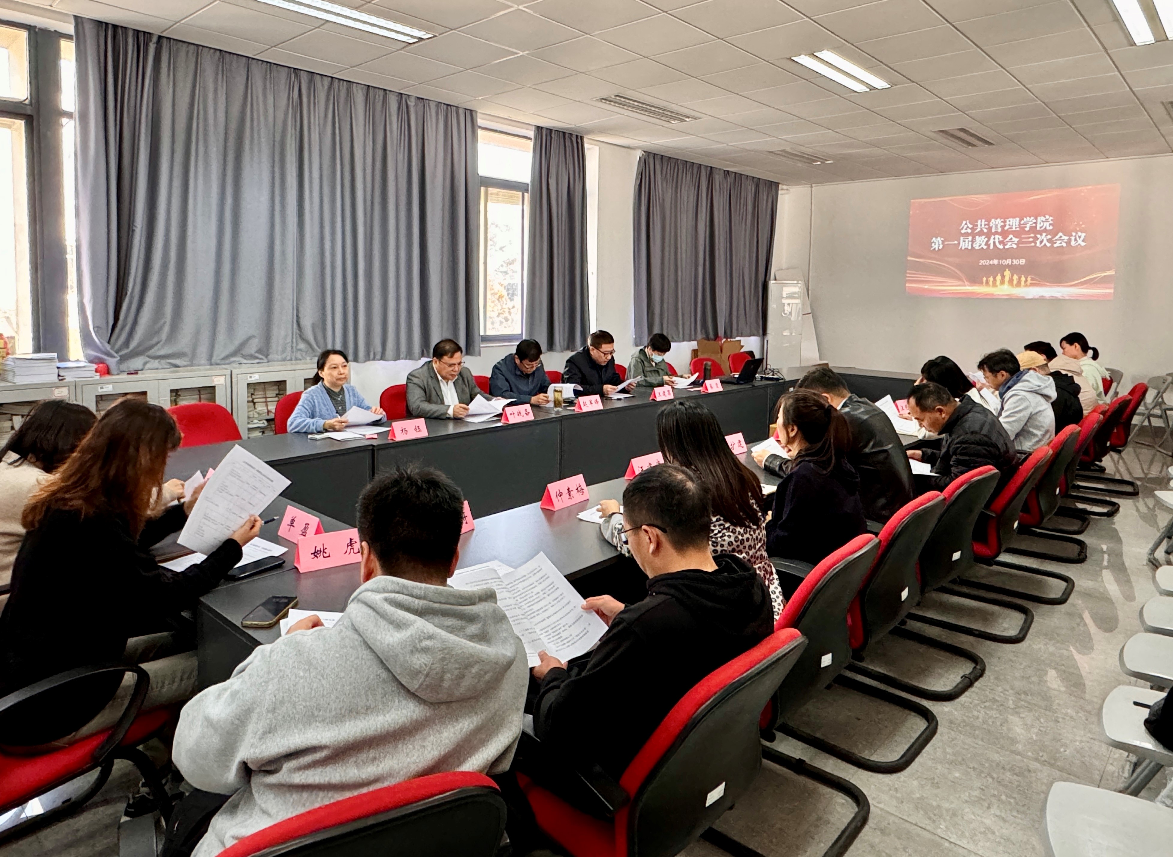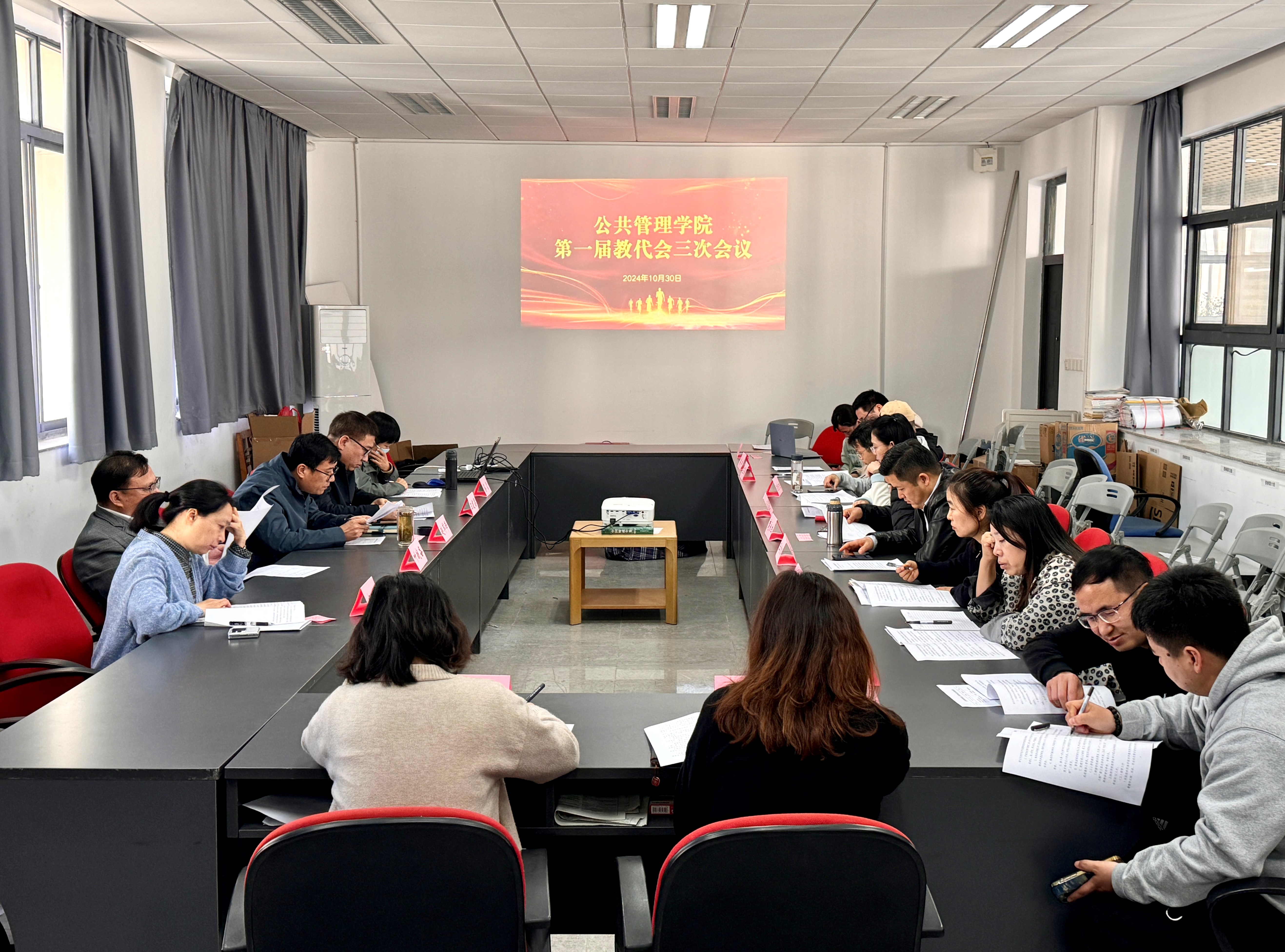 2024年10月30日,公共管理学院在竞慧西楼209召开第一届教职工代表大会第三次会议,学院教职工代表参加会议,会议由学院副书记(主持)汪建昌主持。