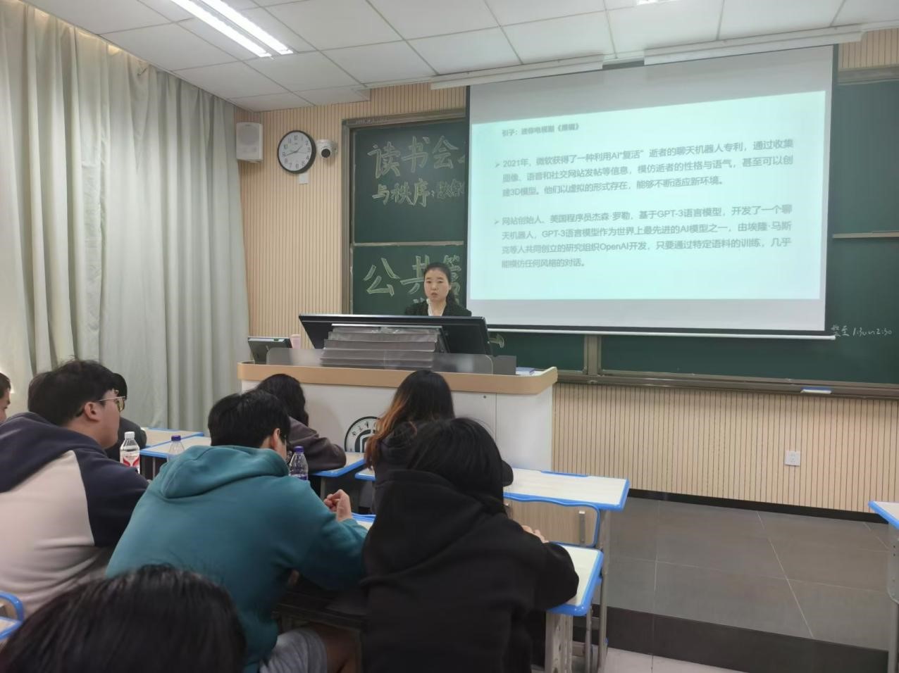 首先,汪老师带领同学们从整体方面了解了《黑镜与秩序:数智化风险下的人工智能伦理与治理》这本书,开篇以迷你电视剧《黑镜》为引例,从而引出了本次读书会的主题——黑镜与秩序,数智化风险下的人工智能伦理与治理。